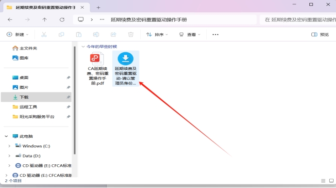 (一)首先登入系统点击单位信息,点击CA办理选择已有CA,点击延期密码驱动下载按钮下载压缩文件